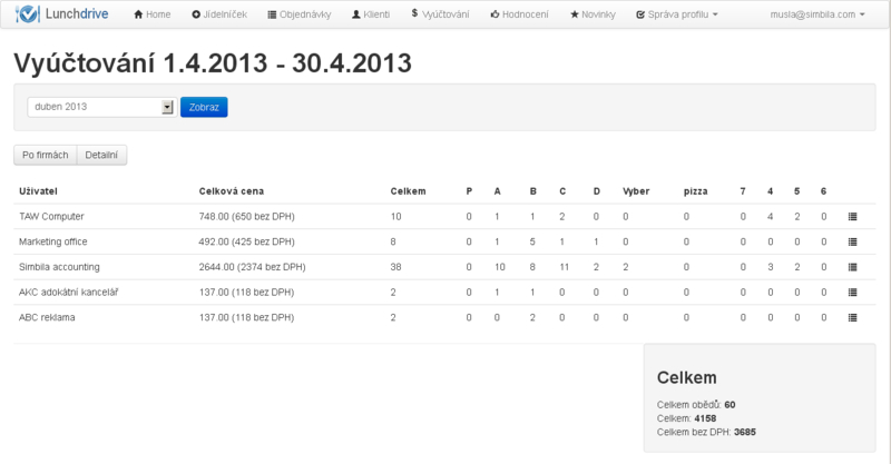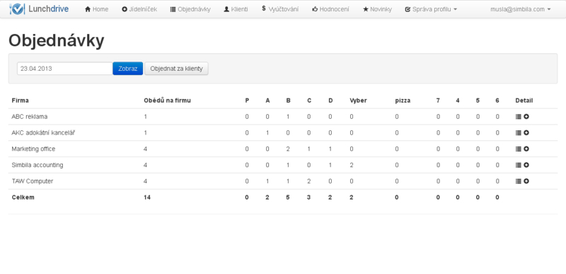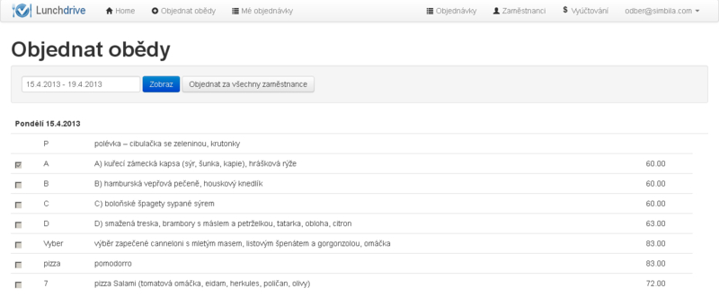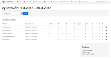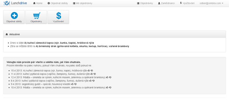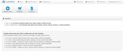 Lunchdrive je webová aplikace, která výrazně usnadňuje komunikaci mezi dodavateli a odběrateli obědů s rozvozem. Dodavatelé zde zveřejňují své jídelníčky, uživatelé objednávají jednotlivé obědy a jejich souhrny jsou pak přehledně zobrazovány dodavateli i odběrateli.